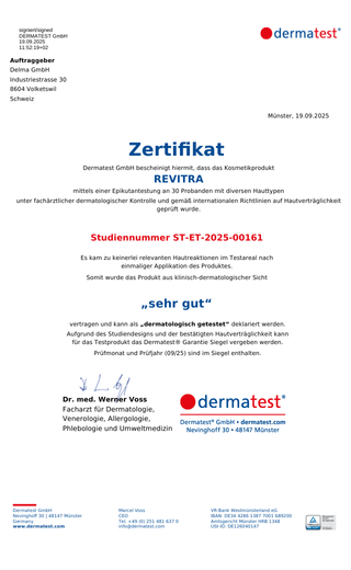 REVITRA enthält nur das, was Deine Haut wirklich braucht – und sonst nichts. Keine Duftstoffe, keine Füllstoffe, keine Kompromisse. Die schonende Herstellung sorgt dafür, dass alle Wirkstoffe in ihrer besten Form erhalten bleiben – für maximale Pflege und höchste Verträglichkeit.